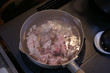 - ゴマ油大さじ1をフライパンで熱したら、塩胡椒で少々味付けをしながら強火で豚肉を炒めます。焦げ目が付く前にゴーヤを投入し、そのまま強火で炒めます。