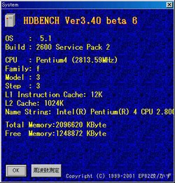 まずは環境から。ちょっと条件が違うけど。Core Duo 認識できず Celeron になってます。