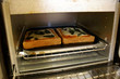 - とろけるスライスチーズをのせ、バジルを好きなだけのせます。のせたら食パンを焼くのと同じ感覚でオーブンで焼きます。とろけるチーズが焼けてきたらOKです。約7分程だとおもいます。