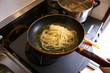 - 次にパスタを普通に茹でます。茹で上がり30秒前に、ジェノベーゼペーストをフライパンに移し、中火で炒めます。