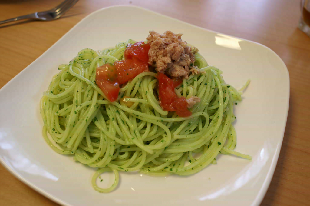 パスタを食べに行くとしてもチーズがダメな僕は和風ソースのパスタかオニオンソースのパスタしか選択肢がありません。たま〜にしか食べに行かないパスタですが、その中でもまぁ美味しいなぁ〜と感じるパスタの1つがジェノベーゼパスタ。バジルペーストで緑色に染まる麺とバジルの香りがなんとも食欲をそそります。
