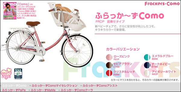 自転車屋で子供を乗せていろいろ試乗して、2006 Maruishi(マルイシ)ふらっか〜ず コモFrackers-Como24,26インチ3段変速つきってやつに決めました。幸い、近くの自転車屋も楽天最安値と同額の 47,800 円でした。