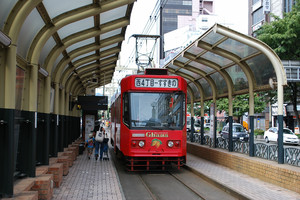 すすき野からはチンチン電車です。やっぱり関東にはない乗り物でいかなきゃね。九州に行ったときもチンチン電車に乗りましたが、なんというか道路の真ん中を電車が走る感覚は独特のものがあります。この違和感が気持ちがよいです。