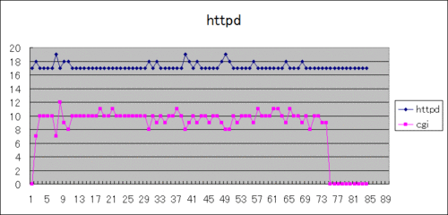 httpd, cgi のグラフから httpd と cgi のプロセス数状況を把握します。