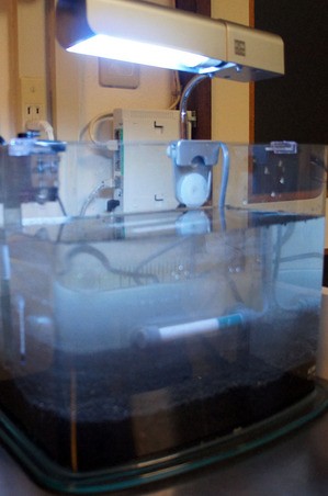 通常の水槽では飼育水をつくるのに何日もかかるそうですが、このアクアシステムは気を遣わなくて良いので楽ちんです。下に敷いてある土みたいなソイルに秘密があるそうです。ソイルの寿命は1年半程度らしいですが、その間はソイルに定着した濾過バクテリアが、魚に有害な物質を吸着・分解してくれるため、安全な飼育水が保たれるそうです。