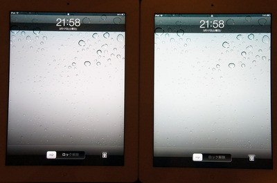 その他にもいろいろ違う点もありますが割愛します。僅かに気になるのは色温度が違うことでしょうか。新しいiPadの方が色温度が高いようで、若干青みがかかっています。個人的には iPad2 の色の方が好きです。(左がiPad2、右が新iPad)