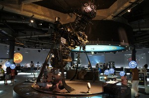 後は常設展示場での思い出になるのですが、5F の「宇宙のすがた」が良かったです。中央に置かれたどでかいプラネタリウム投影機は、名古屋市科学館が開館した時から2010年8月31日まで、旧天文館の20mドームで使われていたツァイスIV(4)型プラネタリウムの実物です。ちなみに現行機はツァイスIX(9)型プラネタリウム。一度は見てみたいものです。