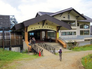 18人乗りのロープウェイに揺られながら10分。746mから1319mの天神平駅まで一気に上がります。下を見てみると自力で登っている人もちらほら。頑張りますなぁ。