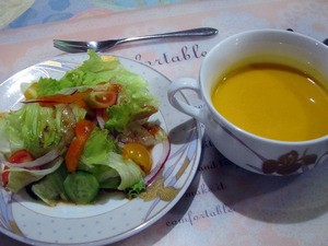 そして事前のネットの評判で期待していた夕食。南仏風田舎料理ですがローズマリーに代表されるハーブを利かせたお料理の数々が出てきました。これは完全に好みの問題になりますが、ハーブがそれほど好きじゃない我が家はちょっと苦手な系統でした。最後の栗ご飯が一番シンプルで美味しかったかな。