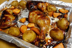 一度冷凍してしまった鶏肉はどうかなぁ〜と思っていましたが、お湯で30分ほど解凍し、即座に200℃のオーブンで焼きあげたら、思ったほど味は落ちていません。もちろん生のほうがジューシーでしょうが、かなり美味しく仕上がりました。
