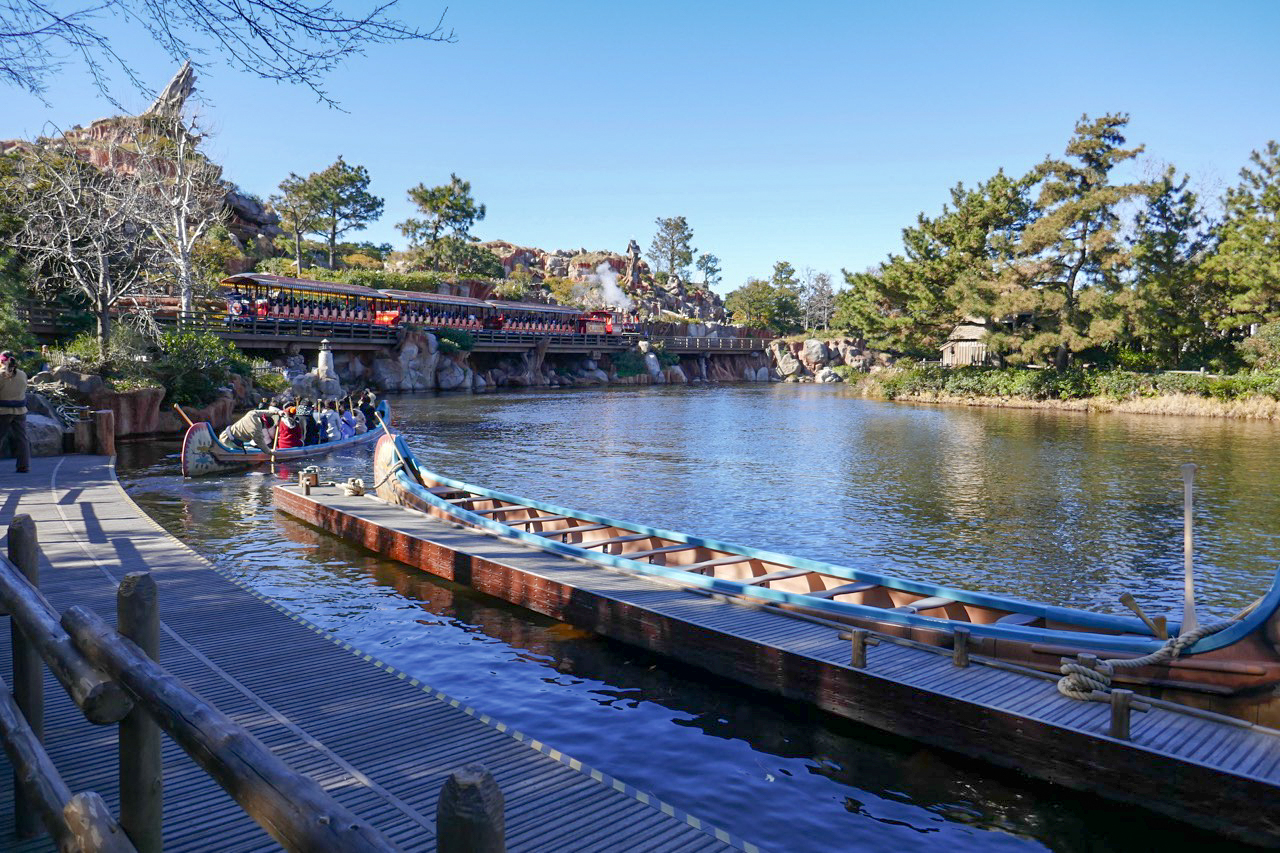 ディズニーランドのカヌーなんてちょろいやろ?となめてたらあかん系です。意外と腕の筋力を使います。個人的にはディズニーランドの中では結構好きな部類に入るかも。元気のいい若い子らがたくさん乗ってたので、意外と力入れて漕がなくともカヌーはスイスイと進んでくれました。