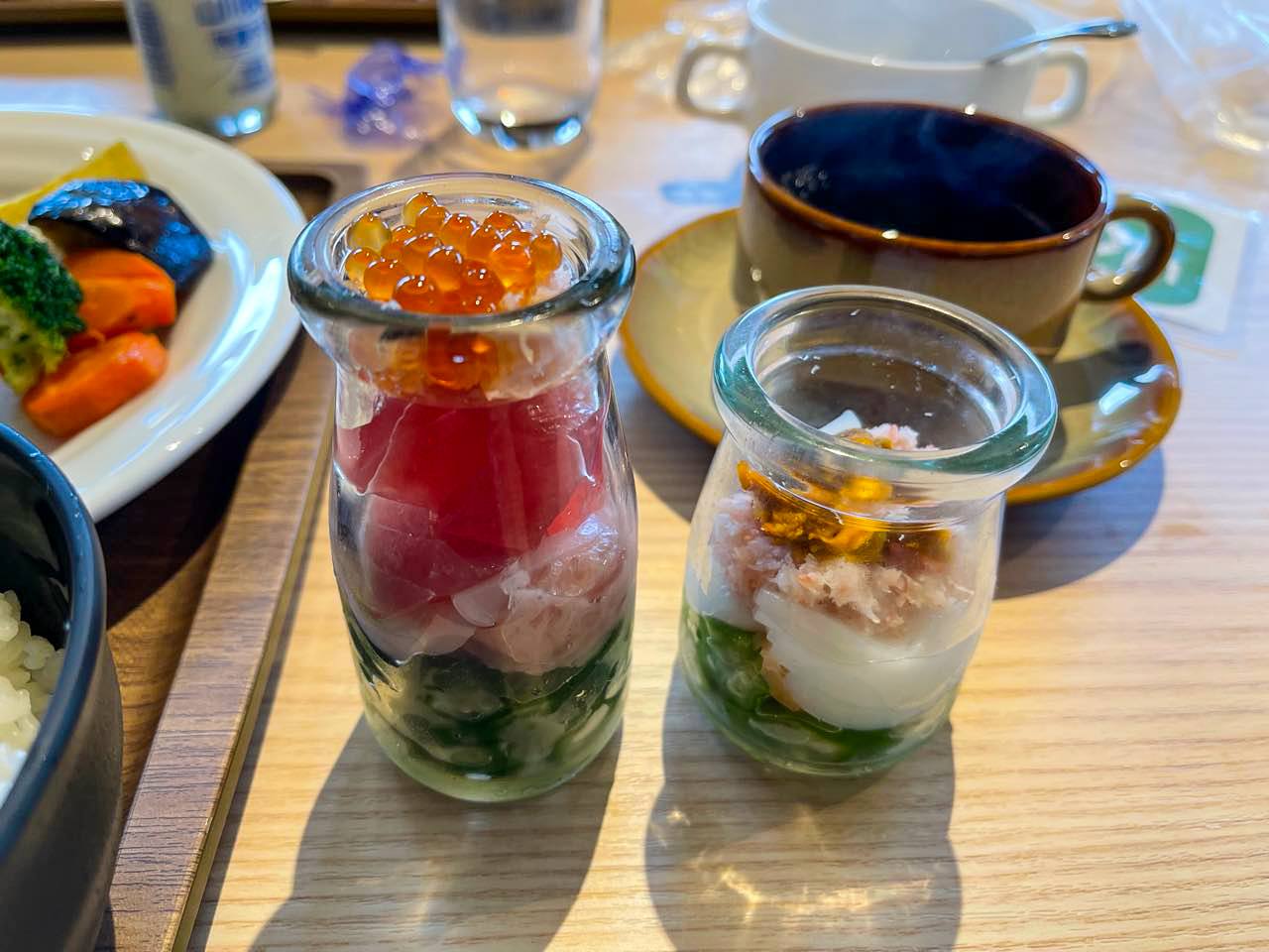 既に腹八分目まで来てるのに、海鮮の瓶詰めだって食べておきたいし、デザートだって別腹で食べておきたい。毎度学習しないねとは言われるくらいに、吾輩は満足じゃ状態を超えて超満腹にはなる。