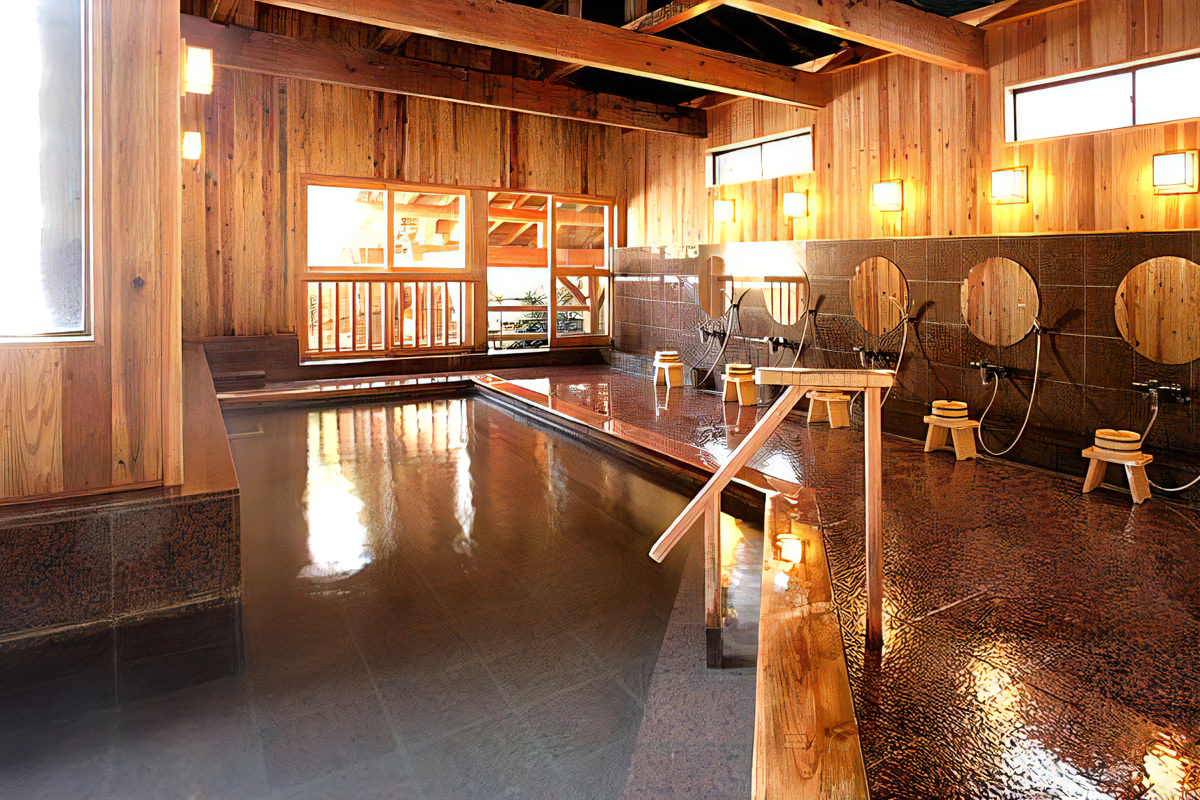 引いてる源泉は万代鉱源泉。内湯と露天風呂はこんな感じ。実際入ったのは夜なので雰囲気は写真とは随分と違う。