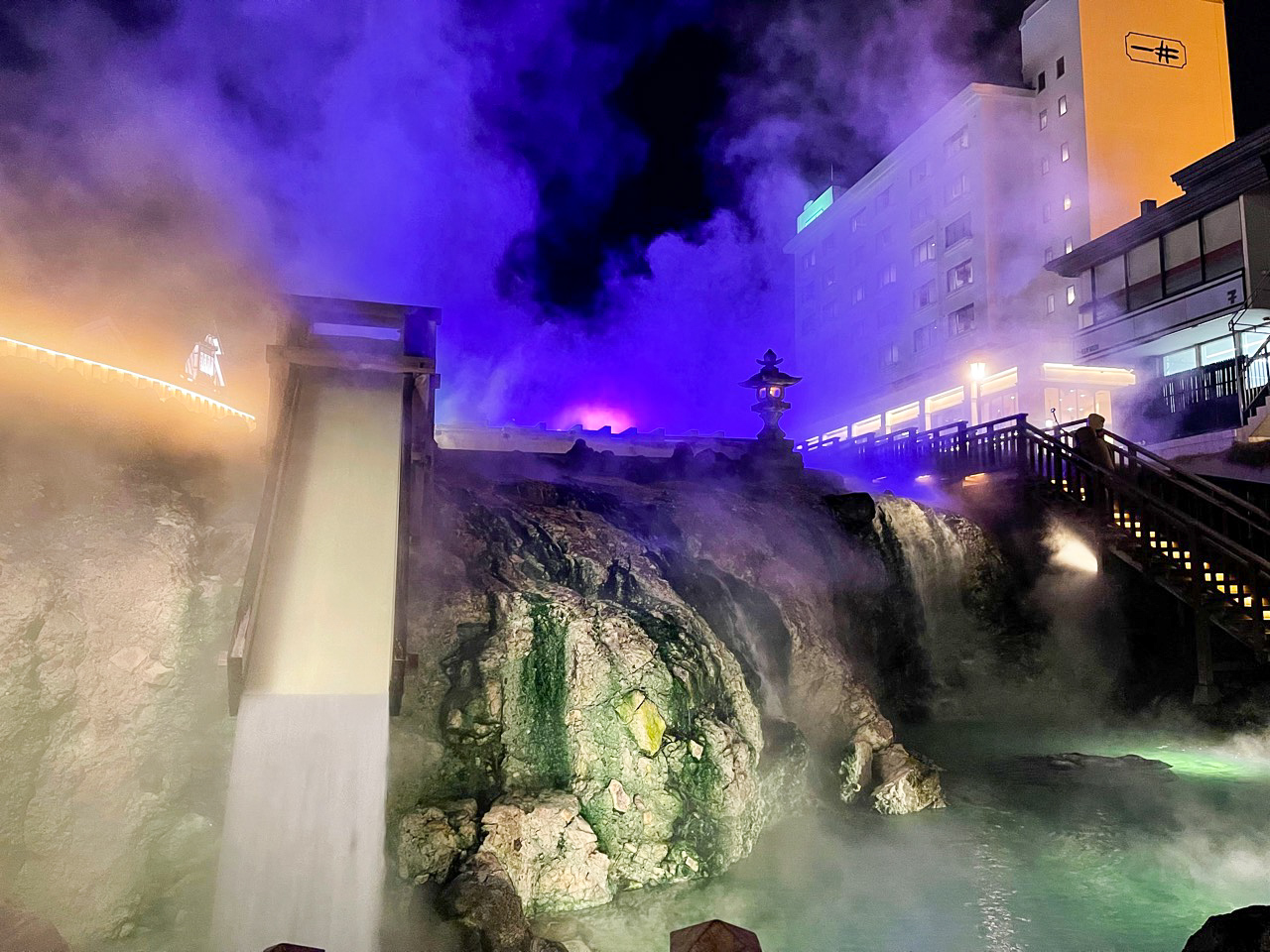 本当は星空を見上げながら西の河原露天風呂温泉にでも入ろうかと計画してたのですが、雨が降って計画中止。一応せっかくなので西の河原公園のライトアップを見ておこうかと寒い中足を伸ばしてみましたが、血の池地獄を思わすようなライトアップでぎょっとした。別の意味で雰囲気出てた。